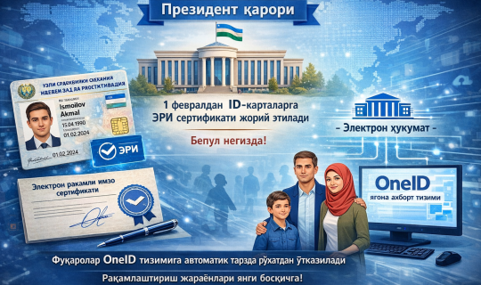 Фуқароларнинг янги ID-карталари OneID тизимига автоматик тарзда уланади.
