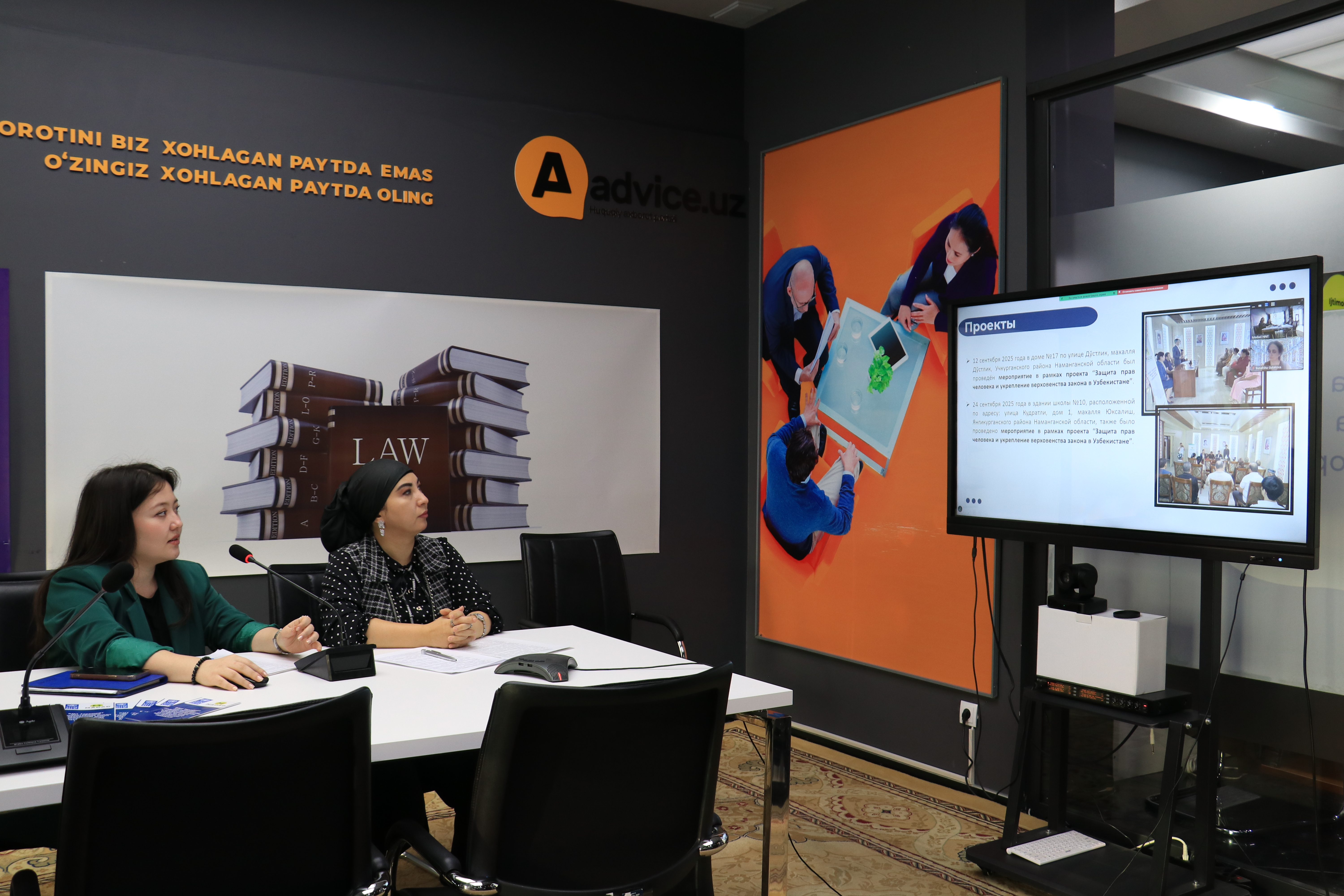 Муҳокама жараёнида мазкур лойиҳа доирасида жорий йилнинг май-сентябрь ойларида Муассасанинг малакали мутахассислари иштирокида Наманган вилоятининг Наманган, Поп, Чуст,  Янгиқўрғон, Учқўрғон туманлари ва Наманган шаҳрида лойиҳа доирасида аҳоли билан сайёр қабул ва учрашувлар ташкил қилингани, ушбу учрашувда уларга бепул юридик ёрдам кўрсатилганлиги, уларнинг ҳуқуқий билимларини оширилганлиги ва 1200 нафар фуқароларга уларнинг сўровига кўра, низоларни судгача ва суд орқали ҳал этишда процессуал ҳужжатлар намуналарини тайёрлаб бериш орқали амалий ёрдам кўрсатилганлиги таъкидланди.